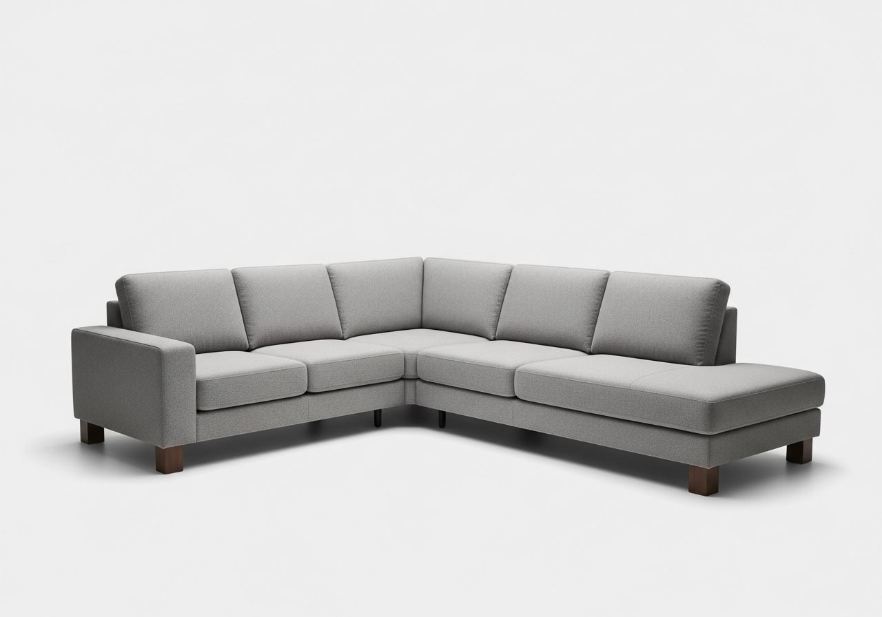 A masterclass in modern comfort, this L-shaped sectional features high-density foam cushions wrapped in premium stain-resistant grey fabric. Ideal for contemporary Indian homes looking to maximize seating without compromising style.